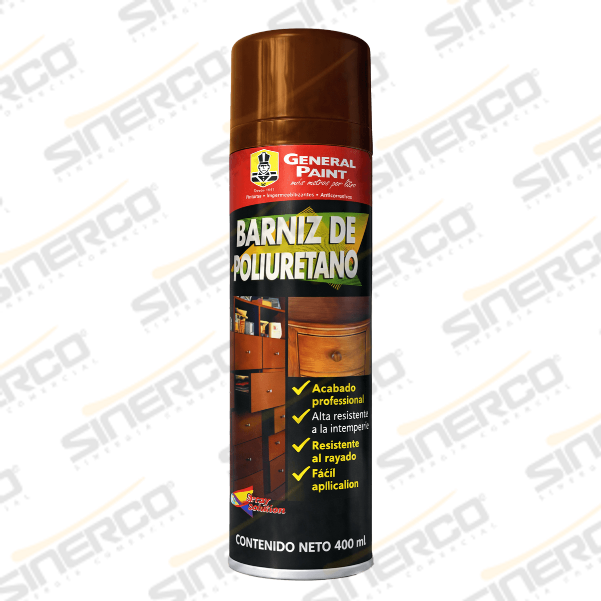 El barniz de poliuretano en aerosol General Spray es un barniz monocomponente de poliuretano modificado, formulado para brindar una protección de alta resistencia y permitir que luzca la veta de la madera con un acabado de fácil aplicación