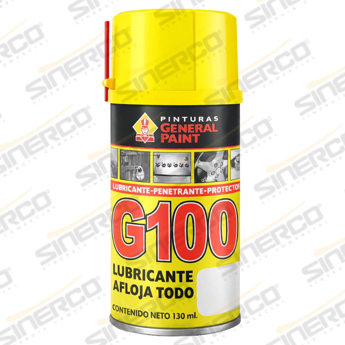 G100 es un aflojatodo en aerosol (lubricante penetrante) diseñado para ayudar a liberar tuercas, tornillos y piezas metálicas adheridas por óxido, grasa, pintura, resinas u otras suciedades, facilitando el desarmado y mantenimiento