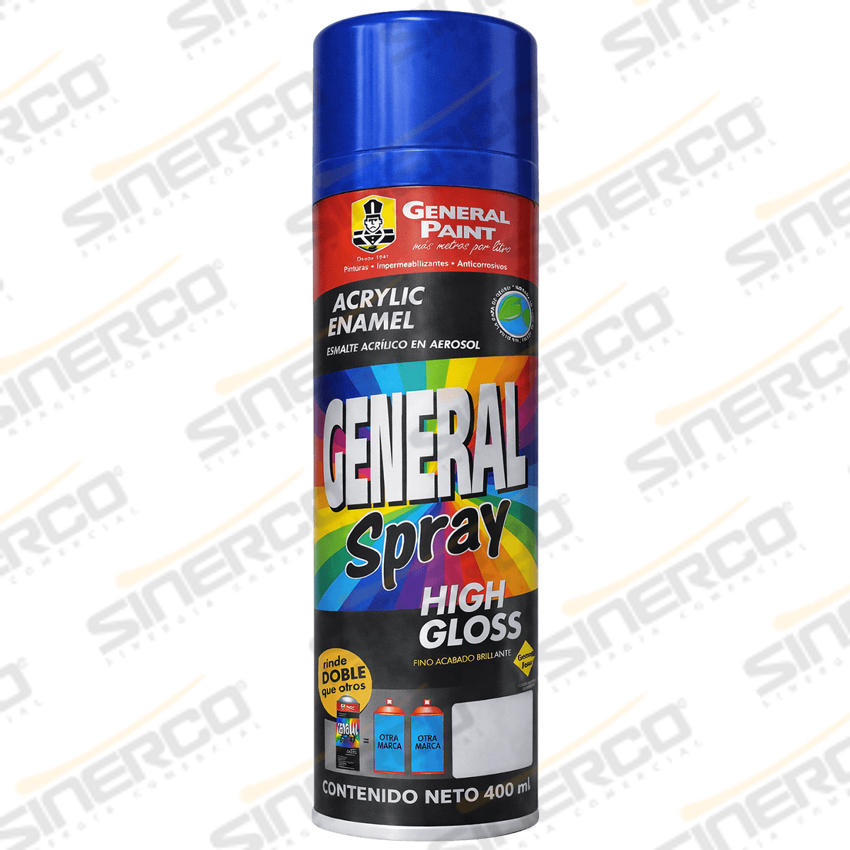 La pintura metálica en aerosol Metálicos de General Paint (General Spray High Gloss) es un recubrimiento de secado rápido diseñado para decorar y proteger superficies, logrando un efecto metálico en tonos como cromo, aluminio, oro y colores metálicos