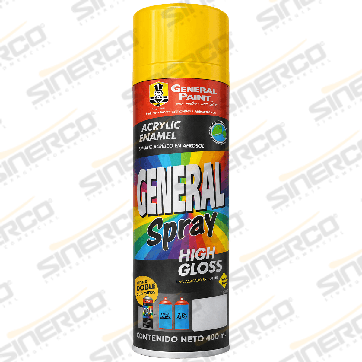 Colores Maquinaria es una pintura en aerosol de secado rápido (General Spray High Gloss) formulada con alta concentración de pigmentos para brindar protección, brillo y un acabado profesional en aplicaciones de mantenimiento y señalización de color en maquinaria y componentes